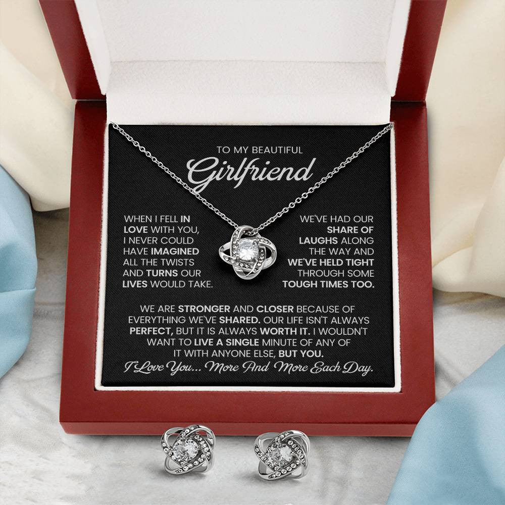 Love Knot Earrings & Necklace Set To My Beautiful Girlfriend