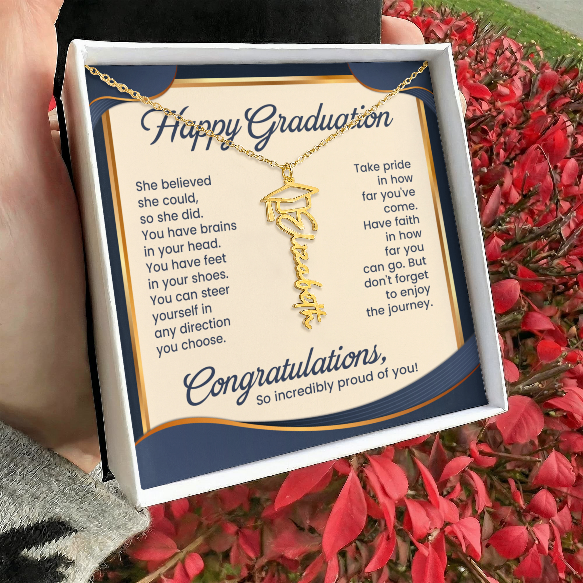 This necklace is more than a gift — it’s a daily reminder of her accomplishments, your pride, and the bright future ahead.
